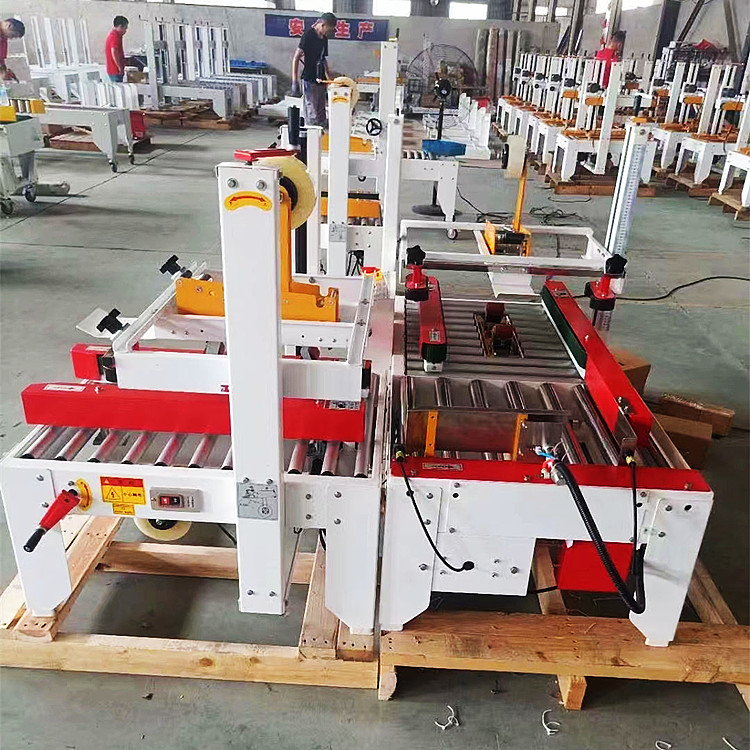 ? ? ? 什么是膠帶封箱機?膠帶封箱機就是用透明或印字膠帶給紙箱或泡沫箱等封口包裝的機器,可以單獨使用,也可和其它機器搭配成自動化輸送線使用。