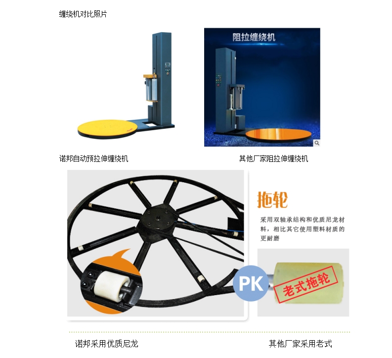 產(chǎn)品知識纏繞機的工作原理是將被纏繞物體放置于轉(zhuǎn)盤中央,啟動轉(zhuǎn)盤電機轉(zhuǎn)動,自然地帶動轉(zhuǎn)盤轉(zhuǎn)動,使物體實現(xiàn)了外圍的纏繞。與此同時升降機電機也啟動,帶動整個組合體做上下運動,達到物體高度方向的纏繞,這就實現(xiàn)了物體整個外表的纏繞包裝。為了能更進一步的讓用戶了解纏繞機性能,選擇適合自己公司的纏繞機設備,這里先從結(jié)構(gòu)、功能和內(nèi)部配置等方面,主要對托盤纏繞機包裝設備進行一下簡單的對比,希望能對您的設備選型起到作用